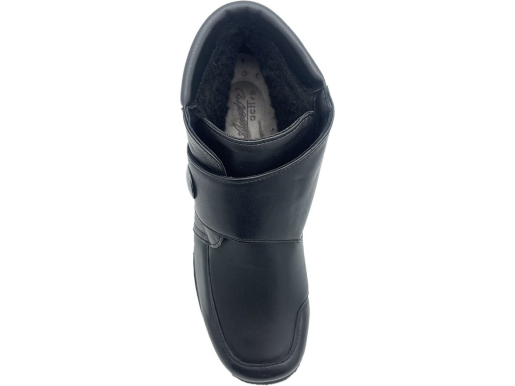 Model Axel AXBW165 černá je ideální volbou pro zimní období, kdy potřebujete nejen teplo, ale i pohodlí při celodenním nošení. Boty jsou vyrobeny z kombinace pravé kůže a strečového textilu, což zajišťuje výbornou přizpůsobivost a pružnost svršku – ocení to zejména ženy s deformacemi prstů či vbočeným palcem. Podšívka z textilního filcu udrží nohy v teple, aniž by docházelo k přehřívání. Díky rozšířené šířce H jsou boty vhodné i pro širší chodidla a osoby trpící otoky. Zapínání na suchý zip umožňuje snadné a rychlé obouvání – ideální pro seniory nebo osoby s omezenou hybností. Lehká PU podrážka s mírným klínkem zajišťuje dobrou stabilitu, měkký došlap a protiskluzové vlastnosti i na mokrém povrchu. Vyjímatelná anatomická stélka podporuje podélnou i příčnou klenbu, což přispívá ke zdravému postoji a ulevuje chodidlům při dlouhém stání. Model Axel černá tak nabízí nejen styl, ale i zdravotní benefity – ideální volba pro zimní pohodlí bez kompromisů.