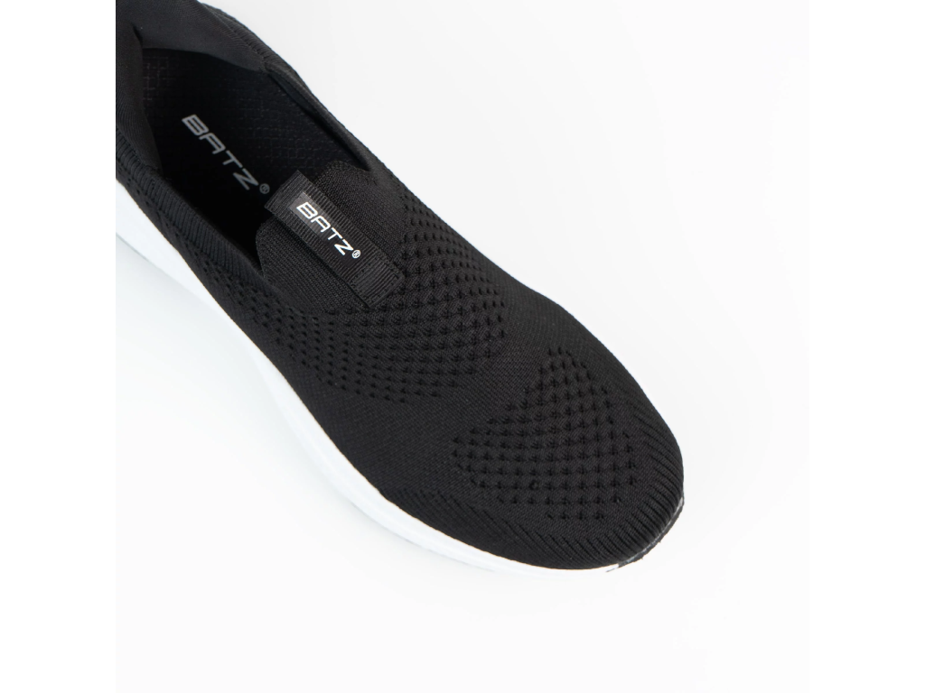 BATZ Flow černé jsou dámské sportovní boty navržené pro pohodlný a aktivní každodenní život. Jejich černý svršek v kombinaci s bílou podrážkou působí svěže, moderně a velmi snadno se kombinuje s volnočasovým šatníkem. Model BATZ Flow černé je ideální pro ženy, které ocení rychlé obouvání bez tkaniček a zipů, protože do bot jednoduše vklouznete a můžete vyrazit. Měkký a lehký svršek jemně obepíná chodidlo a vytváří příjemný pocit i během delšího nošení. Anatomické tvarování spolu s flexibilní podrážkou podporuje přirozený pohyb a pomáhá zachovat komfort při chůzi po městě, v práci i při běžném vyřizování. Velkou výhodou je také vyměnitelná vložka, díky které jsou BATZ Flow černé praktickou volbou i pro ty, kdo využívají individuální stélky. BATZ Flow černé jsou skvělou kombinací lehkosti, funkčnosti a nenuceného sportovního stylu.