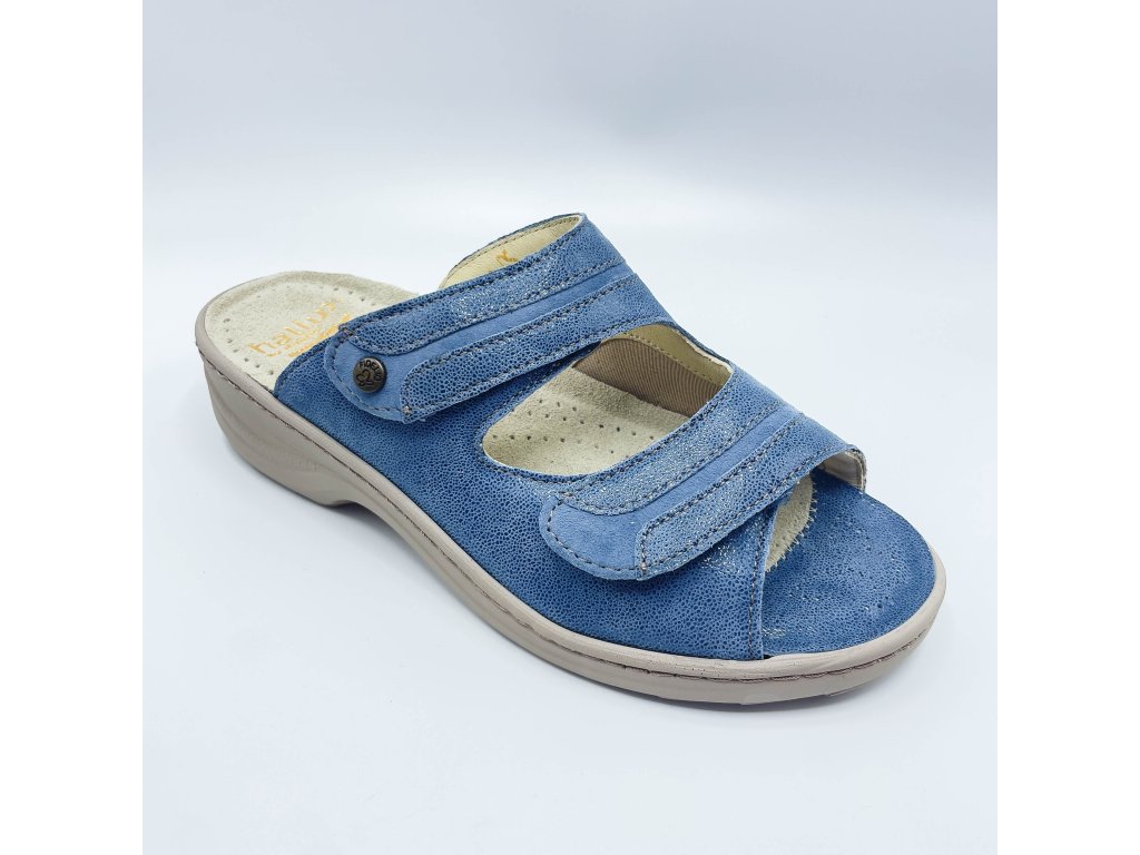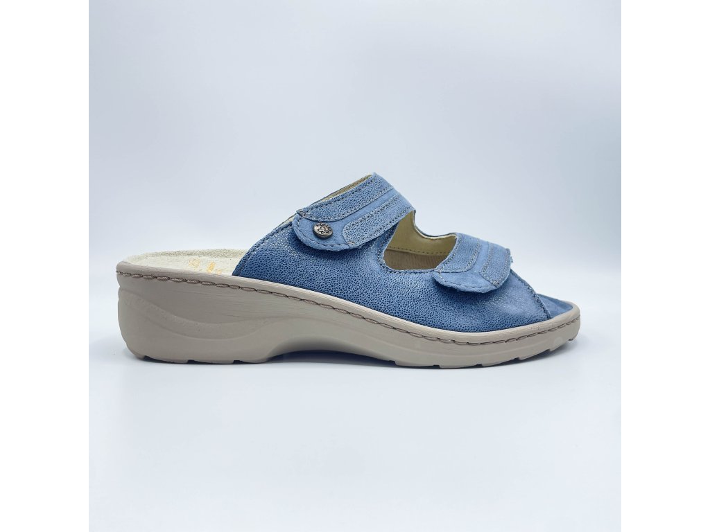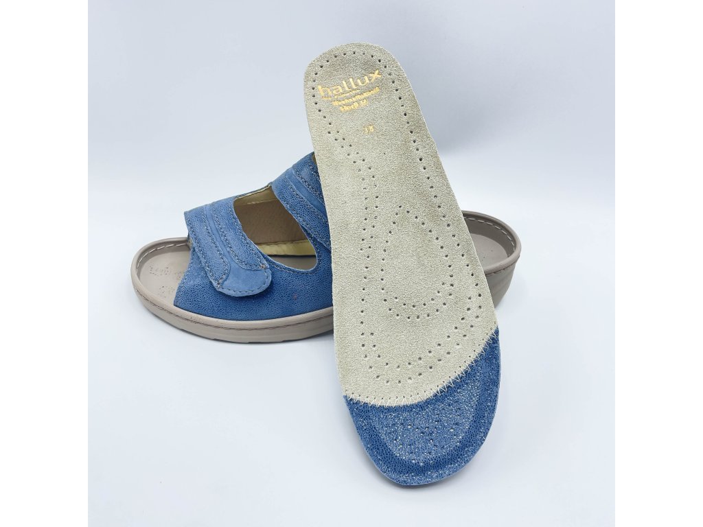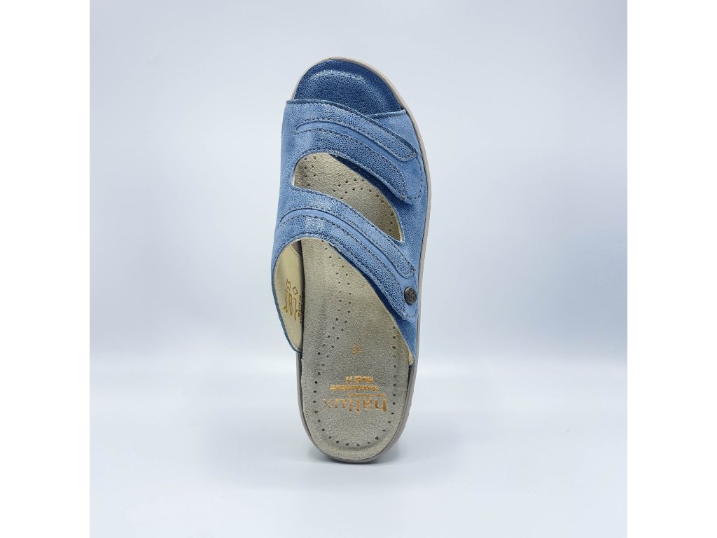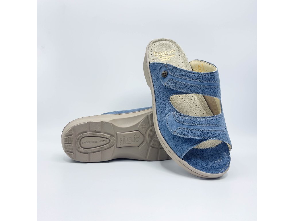 Fidelio HEDI  pro HALLUX v trendy džínové barvě jsou pohodlné kožené pantofle pro doma i ven, které si zamilujete díky extra měkkému došlapu, skvělé oporě a širokému střihu pro maximální komfort.