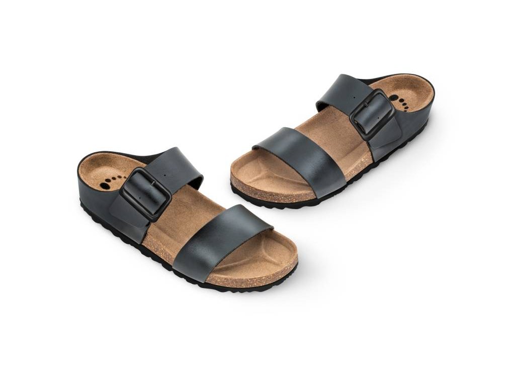 Dvoupásková korková obuv na klínu FORcare s přezkou spojuje eleganci s maximálním pohodlím zdravotní obuvi.