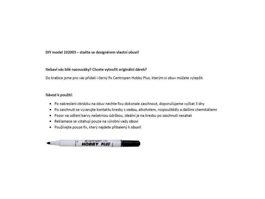 Nevhodné do vody: Z důvodu použitých materiálů je nevhodné obuv používat v blízkosti vody či ve vlhkém prostředí.