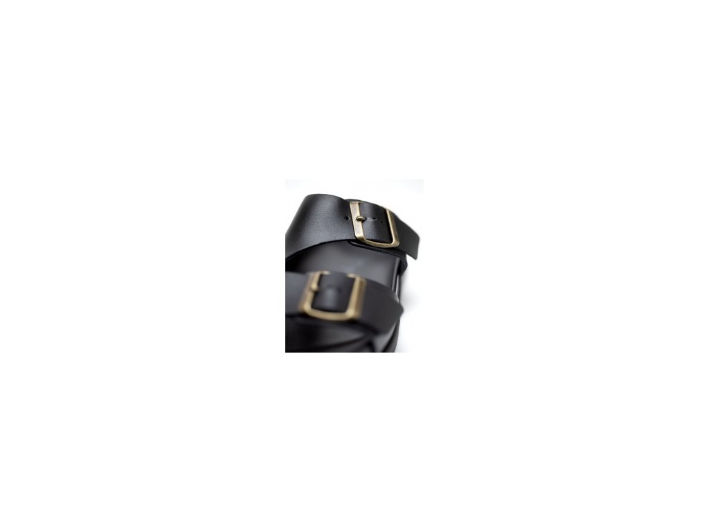 Důležitou součástí je možnost přesného nastavení. Dva nastavitelné pásky s kovovými přezkami umožňují přesné doladění šířky, takže obuv sedí pevně, přirozeně a bez tlaku. Tvarovaná stélka z eko kůže a polyuretanu přináší měkké tlumení při došlapu a gumová podrážka poskytuje stabilitu na různých površích.