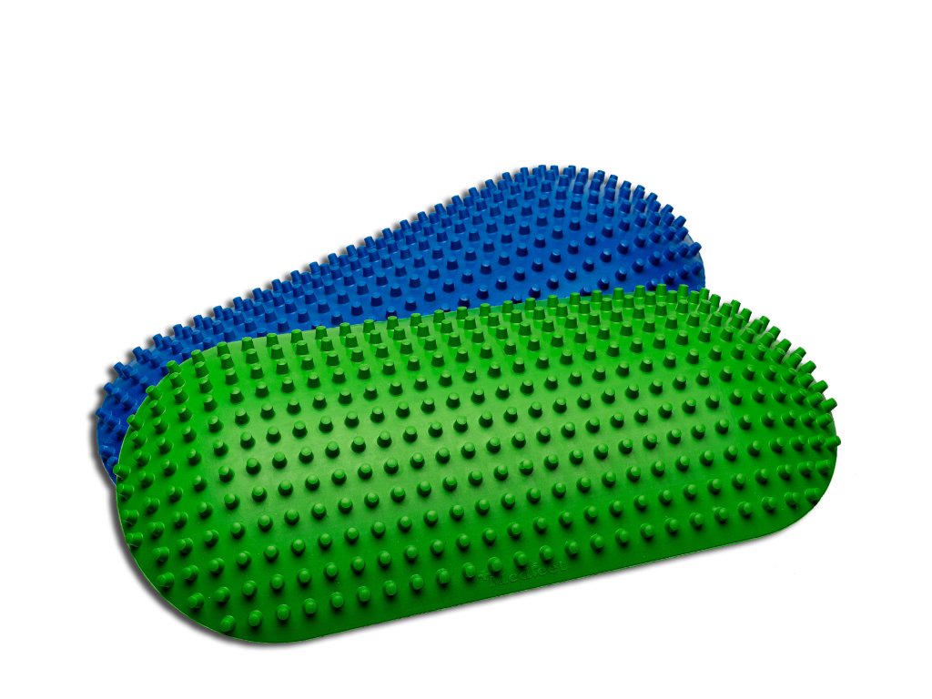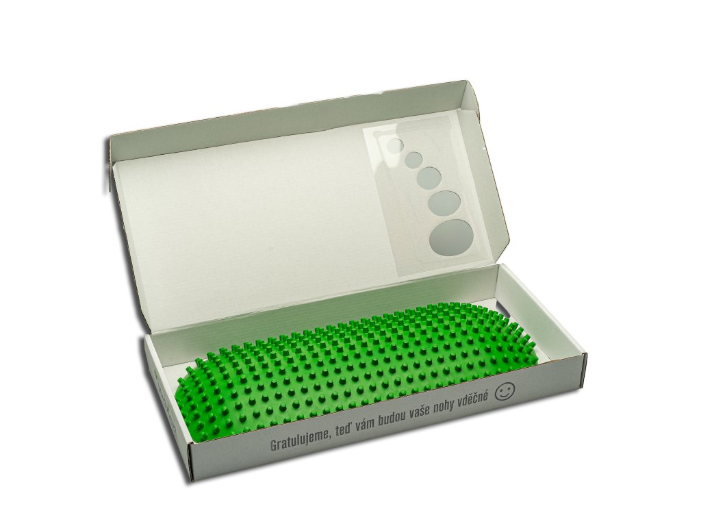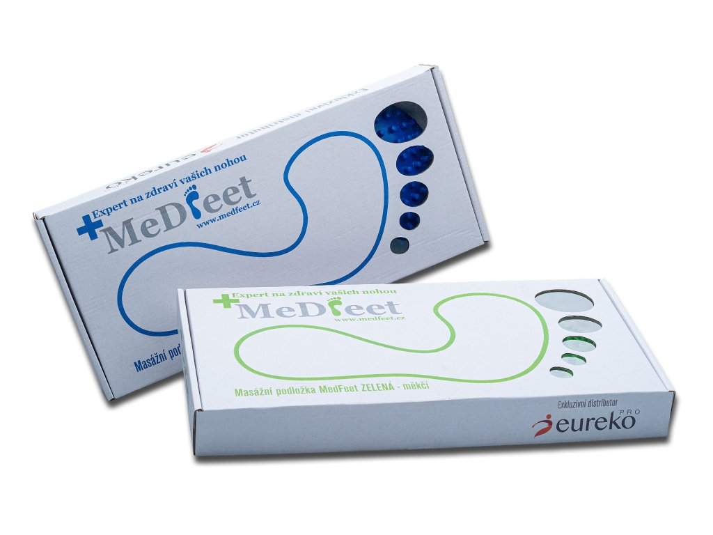 Masážní podložka MedFeet byla námi navržena na základě naší dlouholeté podiatrické praxe. Zelená varianta je vyrobena z měkčí gumy (tvrdost dle Shore A 40). Nabízíme ji ve dvou verzích. Pokud máte chodidla zvyklá chodit na boso či po různých površích, zvolte si spíš tvrdší modrou podložku, která má stejnou funkci.