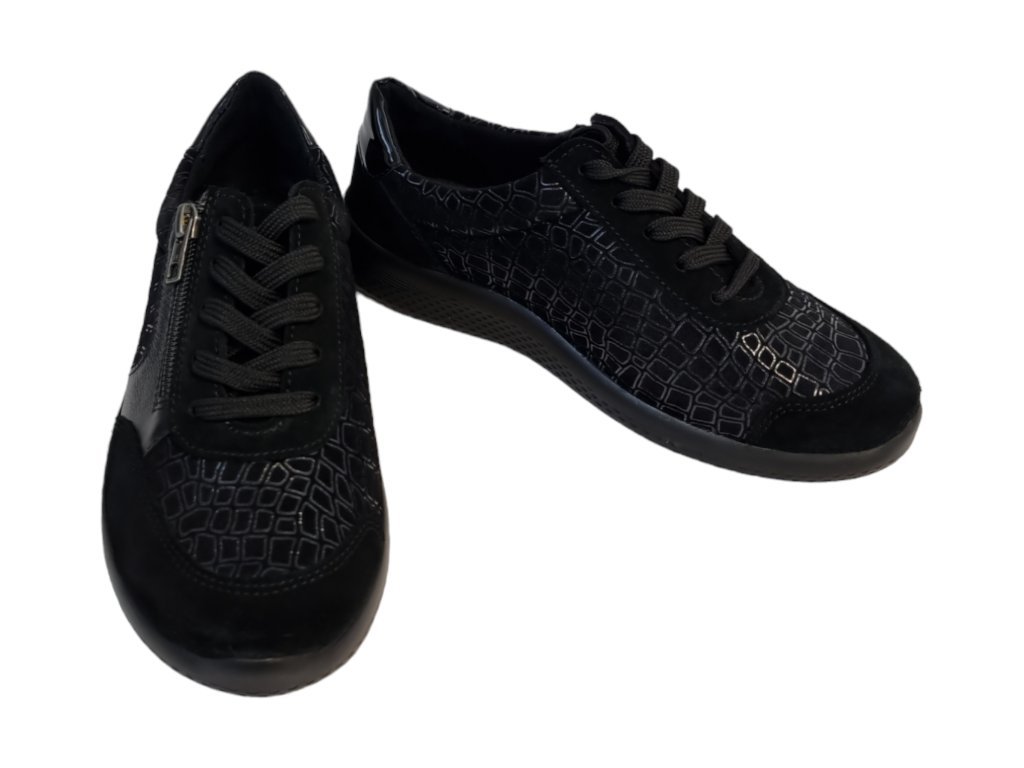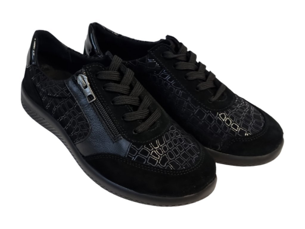 MEDILINE KIRA K 01 1421 dámská zdravotní obuv černá nabízí ideální řešení pro ženy, které hledají komfortní obuv pro každodenní nošení, a zároveň potřebují větší prostor v oblasti prstů. Kombinace pružné lycry a kvalitní kůže se přizpůsobí noze bez tlaku a otlaků, což ocení především uživatelky s halluxy nebo jinými deformitami. Obuv se pohodlně obouvá díky šněrování a praktickému zipu na boční straně. Protiskluzová podešev s výškou klínku přibližně 3 cm poskytuje jistotu a tlumení při chůzi. Vnitřek je měkce polstrovaný a vyjímatelná stélka umožňuje použití vlastní ortopedické pomůcky. Tmavě modrá barva přidává decentní eleganci a snadno se kombinuje s oblečením. Mediline KIRA je skvělým řešením pro ženy, které chtějí pohodlí, zdraví i styl v jednom kroku.
