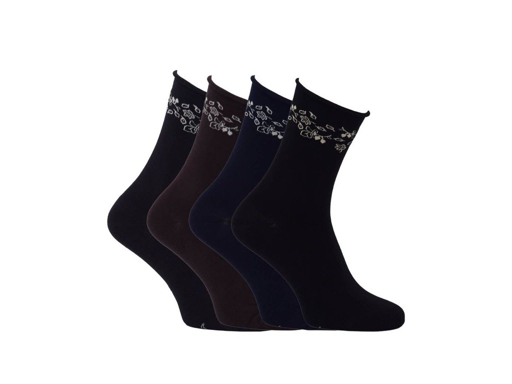 Dámské bambusové barevné elastické ruličkové vzorované ponožky bez gumiček s bordurkou. Pohodlí zajistí plochý šev na špici(ruční řetízkování) a trvanlivost ponožek pak zesílení (zdvojené pletení) v oblasti paty a špice. Klasické zdravotní bambusové ponožky se příjemně nosí a nesjíždí. Skvěle drží díky své elasticitě a hlavně neškrtí díky pohodlnému ruličkovému lemu bez gumiček. Jednoduše se navlékají a dobře se nosí.
