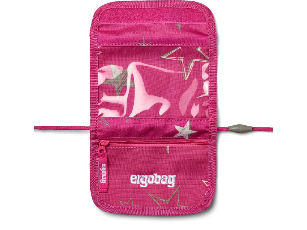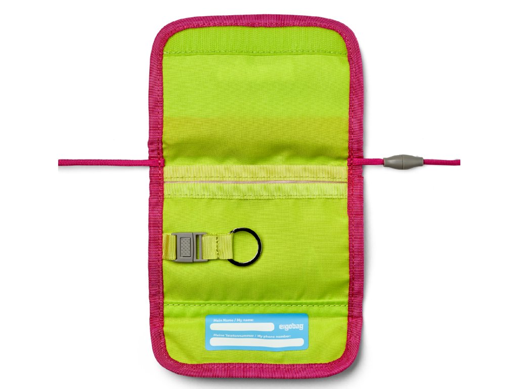 Praktická multifunkční peněženka Ergobag je skvělým doplňkem školního batohu. Svého uživatele ale potěší i samostatně. Uvnitř peněženky je prostor na bankovky, na průkazky nebo karty a kroužek na klíče, který je umístěný tak, aby klíče byly vždy po ruce. Peněženka je uzavíratelná suchým zipem. Přední stranu peněženky tvoří kapsa na zip na uložení mincí. Součástí peněženky je šňůrka na krk s nastavitelnou délkou pro pohodlné nošení.