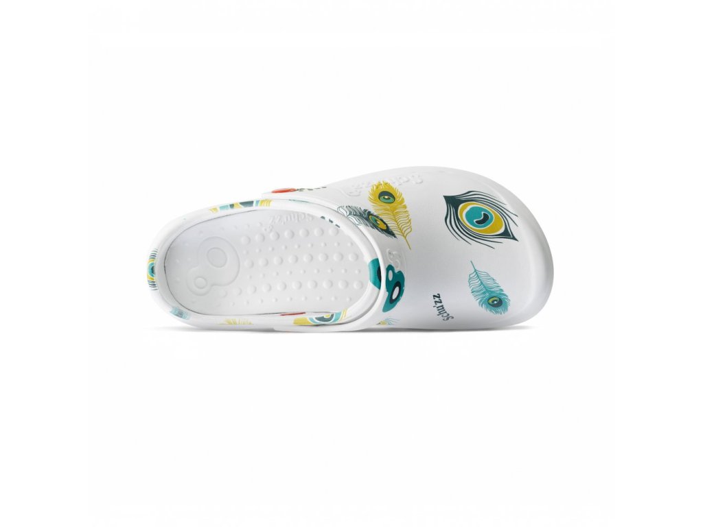 Schu'zz - Dámská pracovní obuv, Protec 0132 - bílá potisk - paví peří