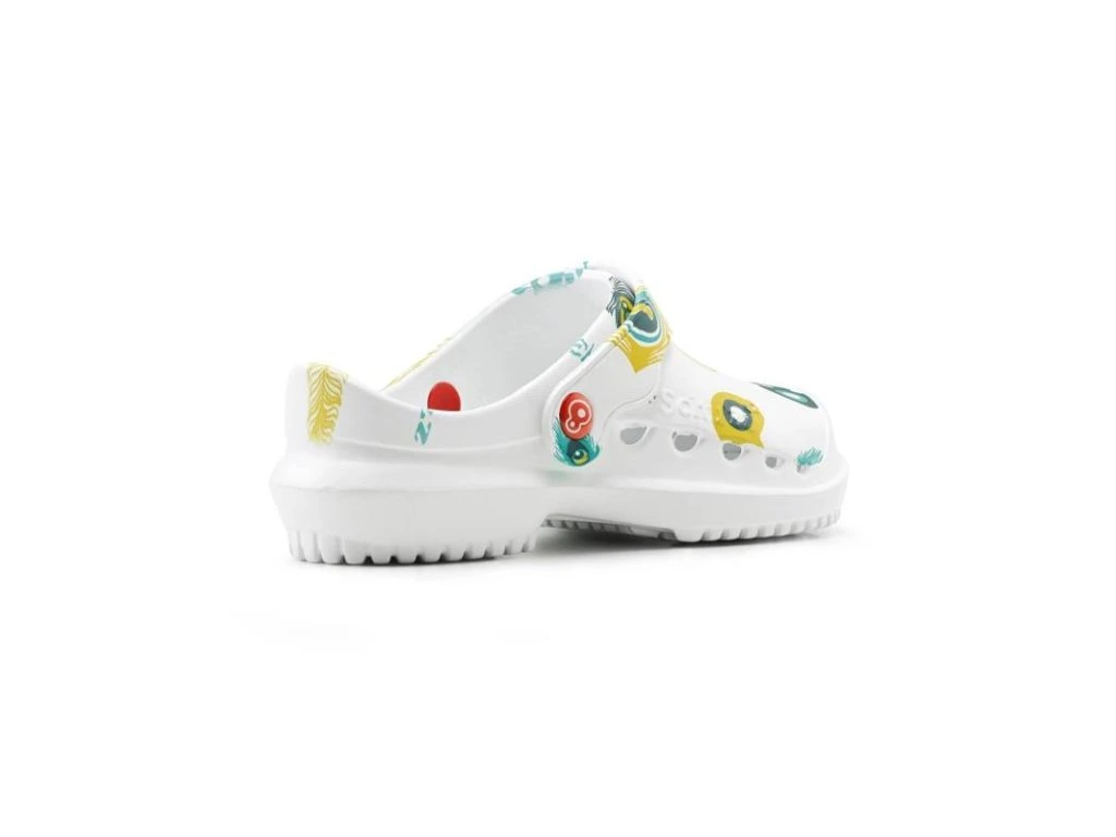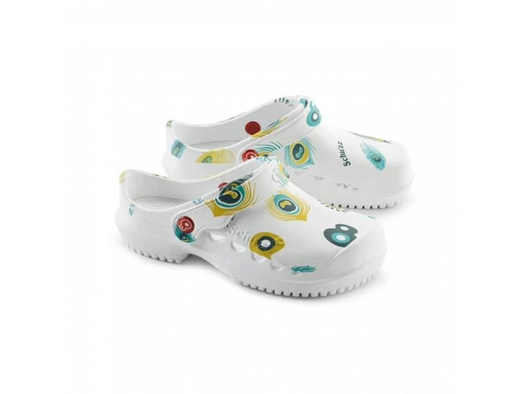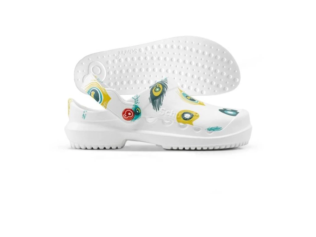 Schu'zz - Dámská pracovní obuv, Protec 0132 - bílá potisk - paví peří