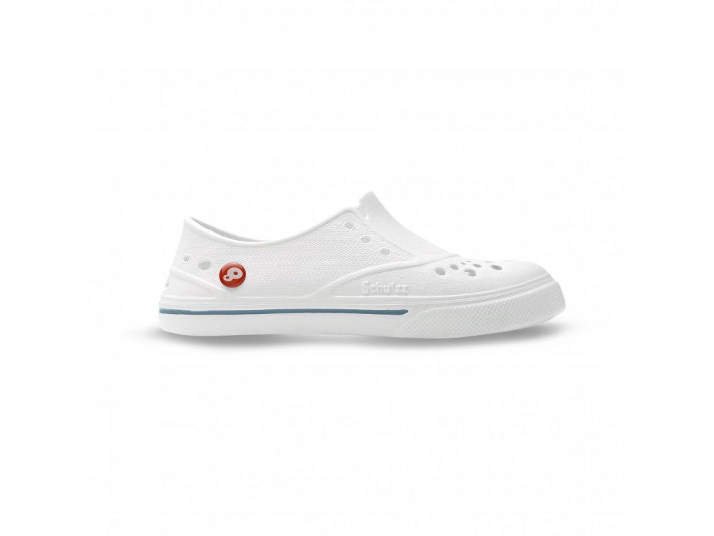 Schu'zz - Dámská volnočasová obuv, Sneaker'zz 0088 - bílá potisk - šedý pruh